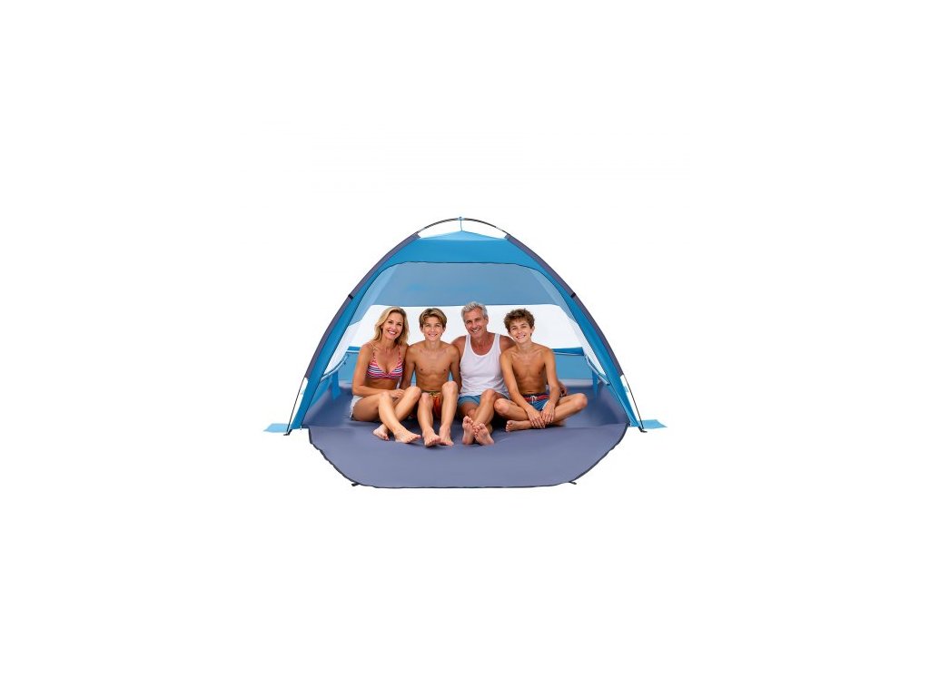 Plážový stan VEVOR, sluneční stříška pro 4 osoby, ochrana UPF 50+, přenosná sluneční stříška s taškou a kapsami na písek, lehký a snadno sestavitelný plážový slunečník pro kempování, rybaření, venkovní piknik
