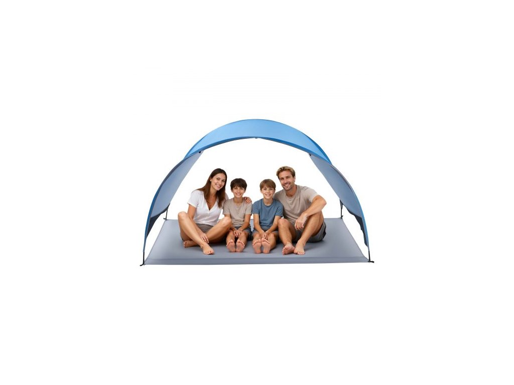 Plážový stan VEVOR, slunečník pro 4 osoby, ochrana UPF 50+, přenosná sluneční stříška s přepravní taškou a kolíky do země, lehký a snadno sestavitelný plážový slunečník pro kempování, rybaření, venkovní piknik