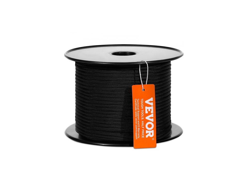 Pletené nylonové lano VEVOR, 3/16 palce x 250 stop, 32 pramenů, pevnost v tahu 720 liber, venkovní lezecké lano, arboristické lano pro lezení po stromech, lano pro skalní turistiku, kempování, houpačku, slaňování, záchranu, černé