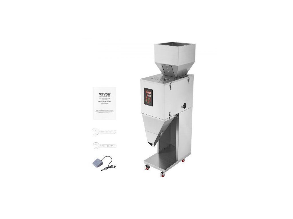 Plnicí stroj VEVOR pro částice, 0,044-11 liber/20-5000 g, automatický plnicí stroj s nožním pedálem, nerezový vážící plnicí stroj, vážící plnicí stroj pro balení fazolí, semen, zrn, čaje a granulíNepoužitelné materiály