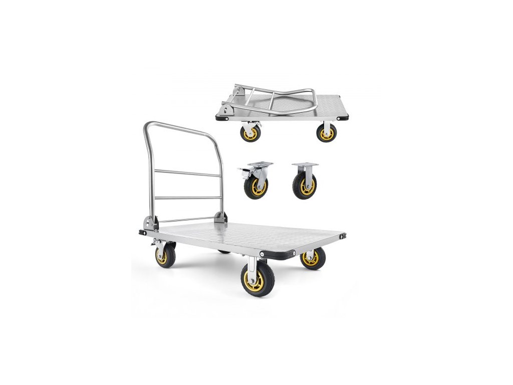Plošinový vozík VEVOR, nosnost 907,18 kg, vysoce odolný ocelový plošinový vozík s otočnými koly a rukojetí, skládací ruční tlačný vozík s plošinou, pro potraviny, garáž, sklad, 900 x 600 x 900 mm