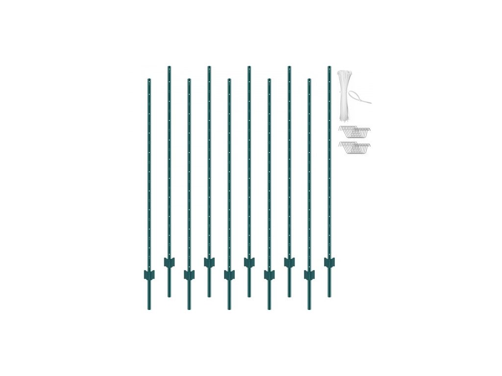 Plotové sloupky VEVOR 182,9 cm, balení 10 kusů, odolné kovové plotové sloupky, zelenéRobustní a odolný plotový sloupek
