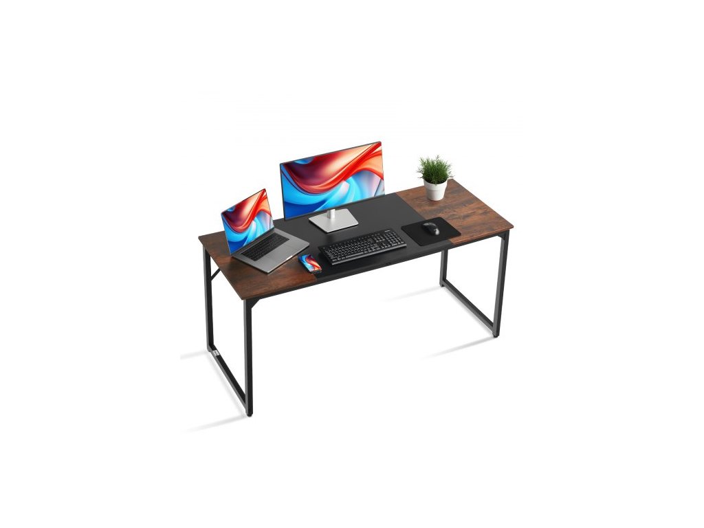 Počítačový stůl VEVOR, 160 cm kancelářský herní stůl pro domácí kancelář, psaní, studium, práce, moderní jednoduchý stůl s kovovým rámem pro velký prostor pro nohy, rustikální hnědá a černá