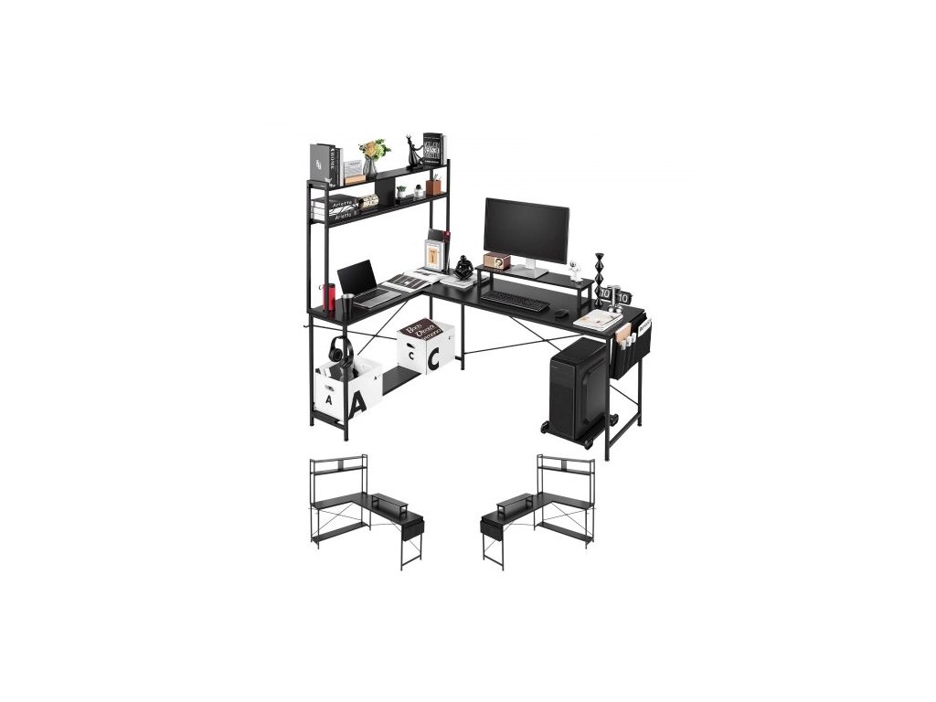 Počítačový stůl VEVOR ve tvaru L, 1,7m oboustranný rohový herní stůl se stojanem na monitor a pohyblivým stojanem na procesor, moderní stylový počítačový stůl, robustní pracovní stanice pro domácí kancelář - snadná montážDostatek úložného prostoru