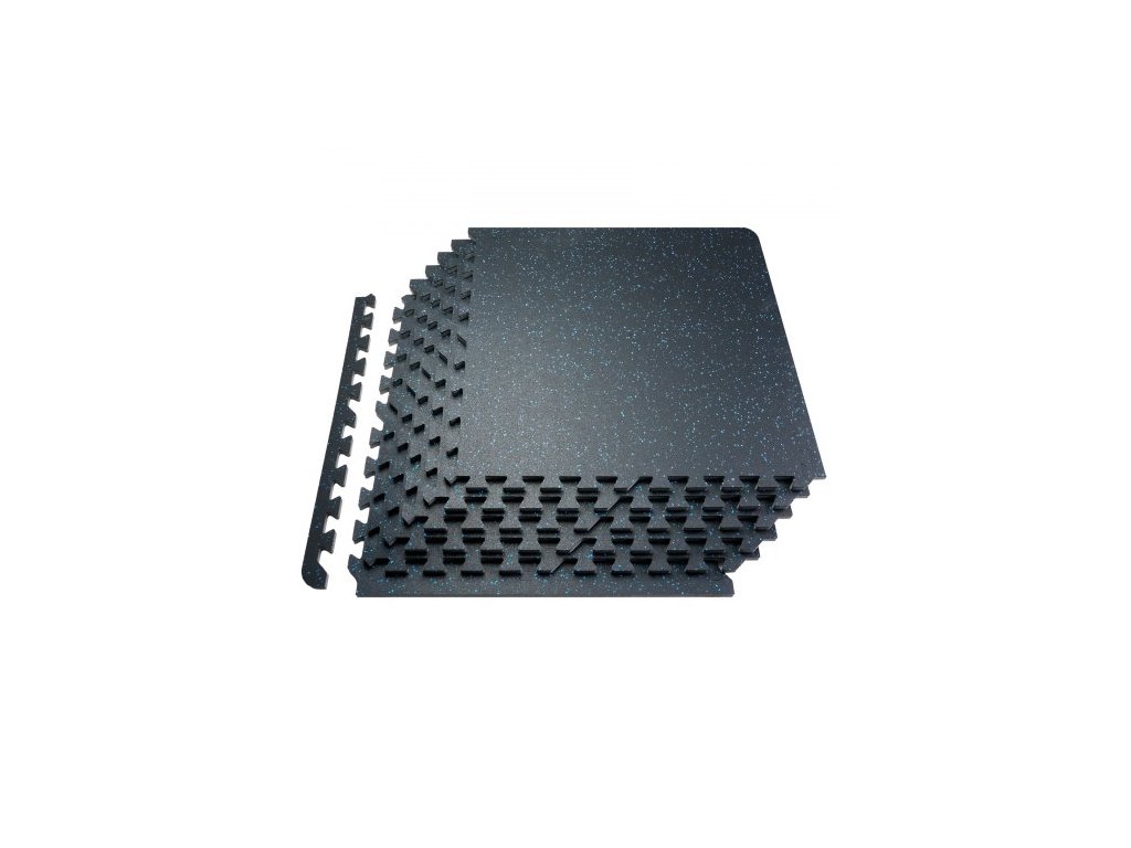 Hlavní materiál: Vrchní vrstva: Guma, 2 mm (syntetická guma + 5 % EPDM granulí), Spodní vrstva: PE, 12 mm, Rozměry produktu: 610 x 610 x 14 mm, Hmotnost produktu: 6,6 kg / 14,55 liber, Barva: Černá s modrými tečkami, Plocha: 24 čtverečních stop, Rozměry: 24 x 24 palců (na kus), se 2 ozubenými hranami + 2 rovnými hranami,Číslo modelu položky: HRD-XJD6614-6B, Množství v sadě: 6 ks, Tloušťka: 0,56 palce