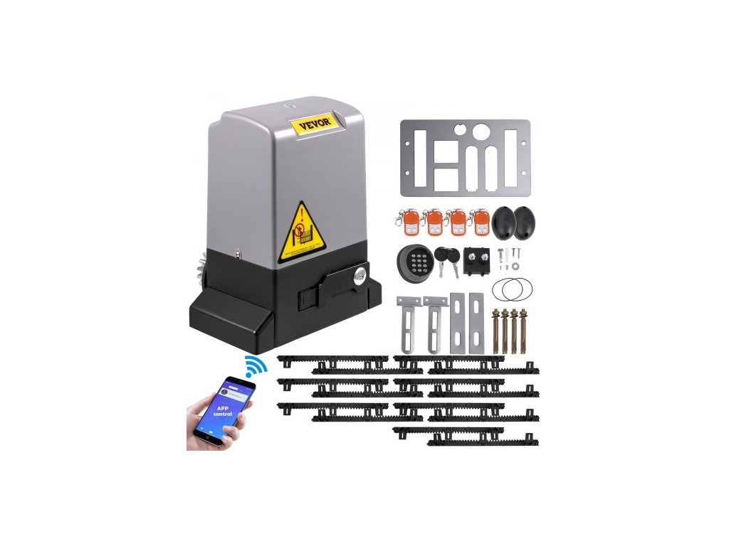 Pohon posuvné brány VEVOR, 1800 kg 7 m, automatická posuvná brána se 4 dálkovými ovladači a ovládáním přes aplikaci, elektrický motor pro rolovací posuvnou bránu, kompletní sada hardwaru a bezpečnostního systému pohonu brány