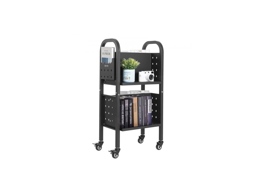Pojízdný knihovní vozík VEVOR, nosnost 70 kg, 45 x 33 x 88 cm, oboustranné police ve tvaru L s uzamykatelnými kolečky 50,8 mm, knihoven do domácnosti, kanceláře a školy, černýMultifunkční knižní vozík 3 v 1