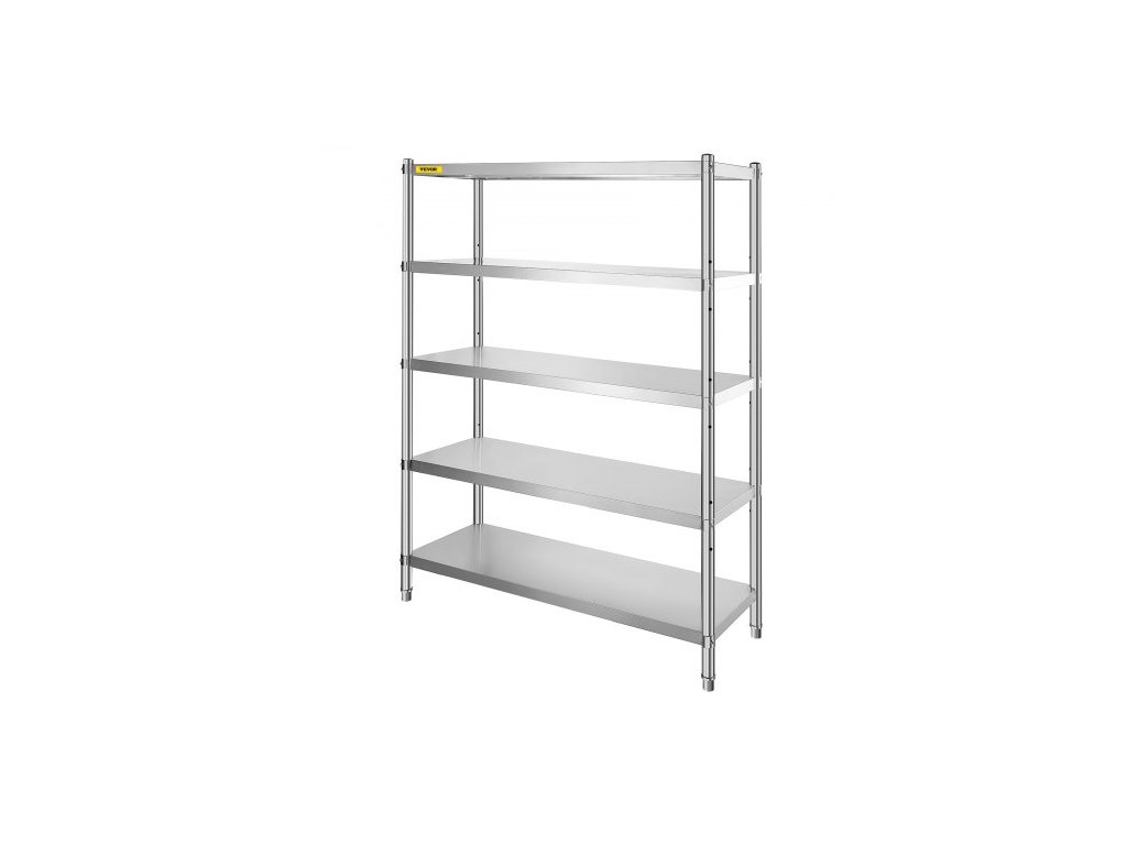Policový modul VEVOR 48x18,5 palce, úložné police, 5patrové policové jednotky a úložný prostor, nastavitelné police, úložná jednotka s nastavitelnými nožičkami, policové jednotky z nerezové oceli, kuchyňské police.Police pro vysoké zatížení