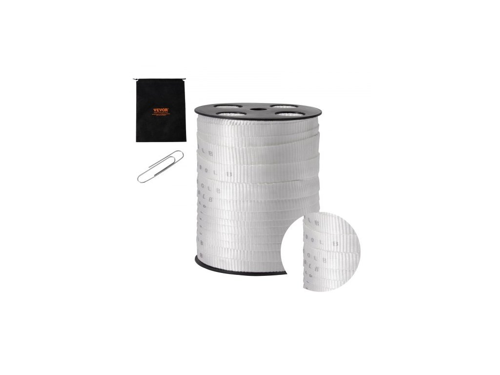 Polyesterová stahovací páska VEVOR, ploché lano 3/4" x 265', tahová kapacita 2500 lbf, potištěná popruhová stahovací páska pro balení, zahradničení, komerční elektroinstalace, práce s elektroinstalacemi, bílá