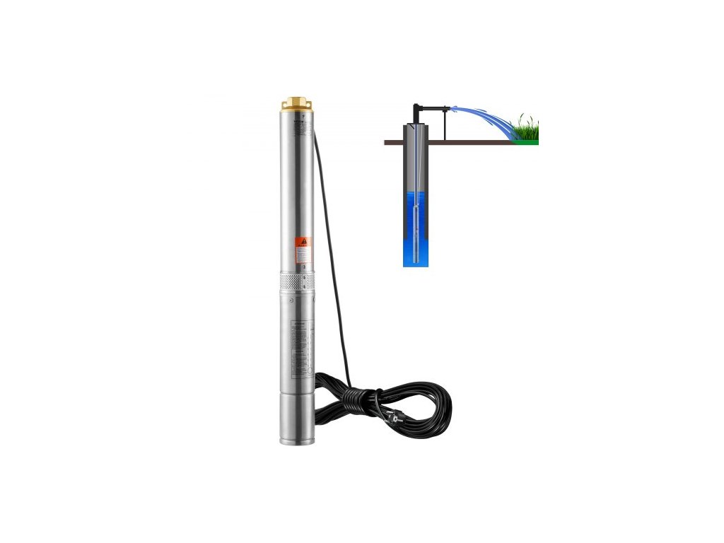 Ponorné čerpadlo VEVOR do hlubinných vrtů, 750 W 230 V 60 Hz, maximální průtok 7,1 m³/h, maximální dopravní výška 75 m, s 9,1 m elektrickým kabelem, vodní čerpadlo z nerezové oceli pro průmyslové, zavlažovací a domácí použití, vodotěsné IP68