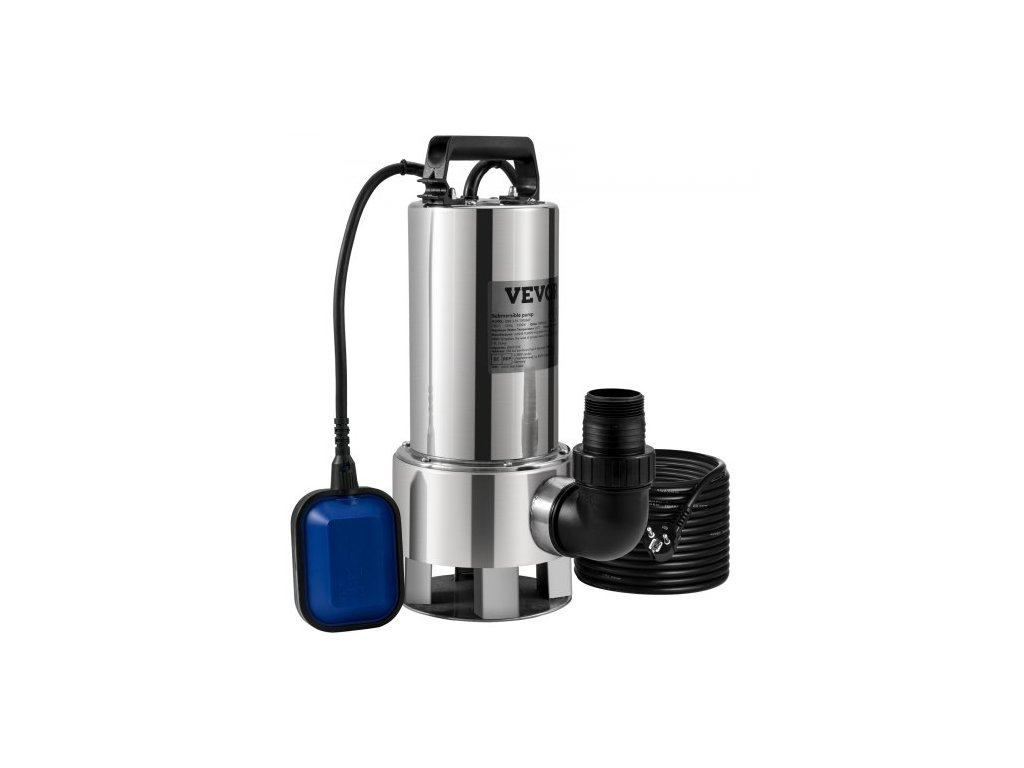 Ponorné vodní čerpadlo VEVOR, 1300 W 20 000 l/h, s 10m kabelem a automatickým plovákovým spínačem, nerezová ocel a litina pro znečištěná nebo čistá, prázdná zahradní jezírka, bazény a vířivky