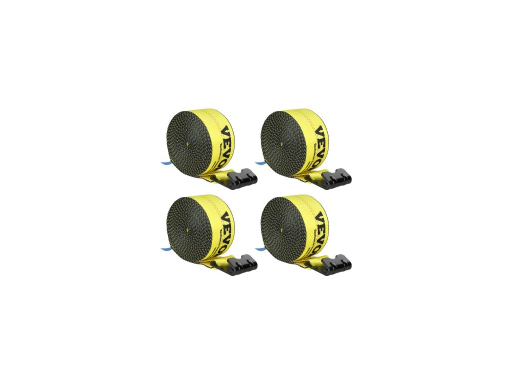 Popruhy pro naviják VEVOR, 4" x 30', nosnost 6000 lbs, pevnost v tahu 18000 lbs, popruhy pro nákladní vozidla s plochým hákem, upevnění na plošinu, kontrola nákladu pro přívěsy, farmy, záchranné akce, ochrana stromů, žluté (4 ks)Zvýšený výkon zátěže