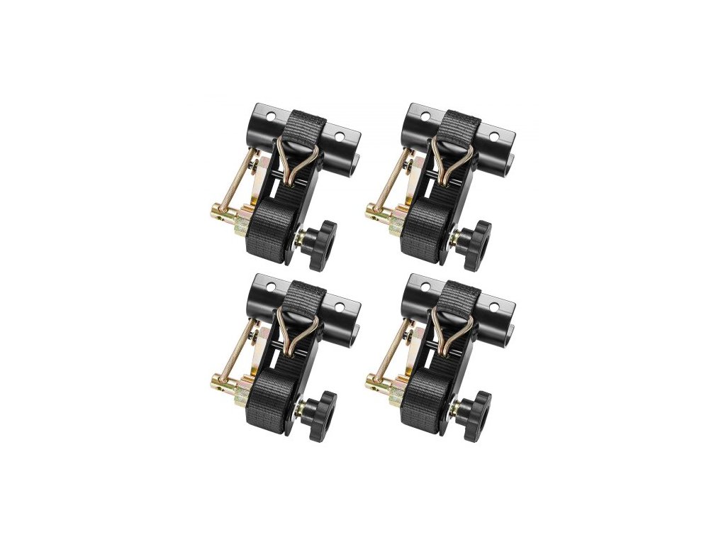 Popruhy VEVOR pro žebříkový nosič s ráčnou, 47,6–50,8 mm černý kulatý trubkový držák, šířka 38 mm x 2,25 m délka, černé popruhy pro žebříkový nosič s dvojitými J-háky, nosnost 226,8 kg pro vysokou životnost, popruh s přezkou pro uchycení nákladu (balení 4 ks)Silná nosnost