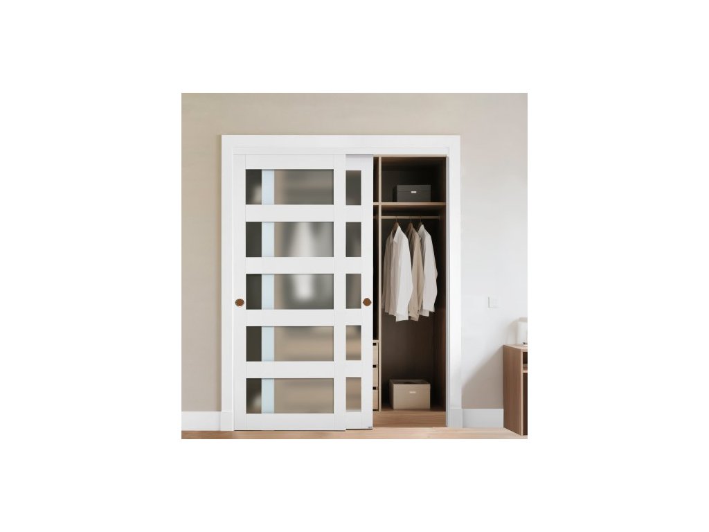 Posuvné dveře do šatny VEVOR, 1524 mm (dvojité 787 mm) x 2032 mm, 5-litrové posuvné dveře z matného skla s kováním, masivní dřevo a MDF deska s voděodolným PVC povrchem pro šatny a ložnice