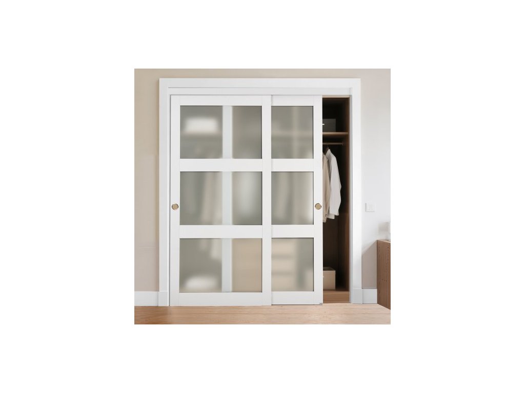 Posuvné dveře do šatny VEVOR, 1829 mm (dvojité 940 mm) x 2032 mm, 3-litrové posuvné dveře z matného skla s kováním, masivní dřevo a MDF deska s voděodolným PVC povrchem pro šatny a ložnice