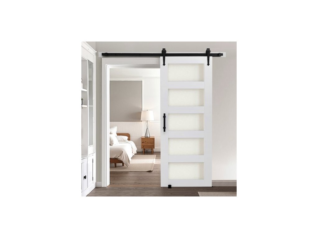 Posuvné dveře do stodoly VEVOR, 762 x 2134 mm, vysokopevnostní MDF panel a sklo, dveře do stodoly s kováním, voděodolný PVC povrch, snadná instalace, H-rám, plynulé a tiché posouvání do obývacího pokojeMultikombinace