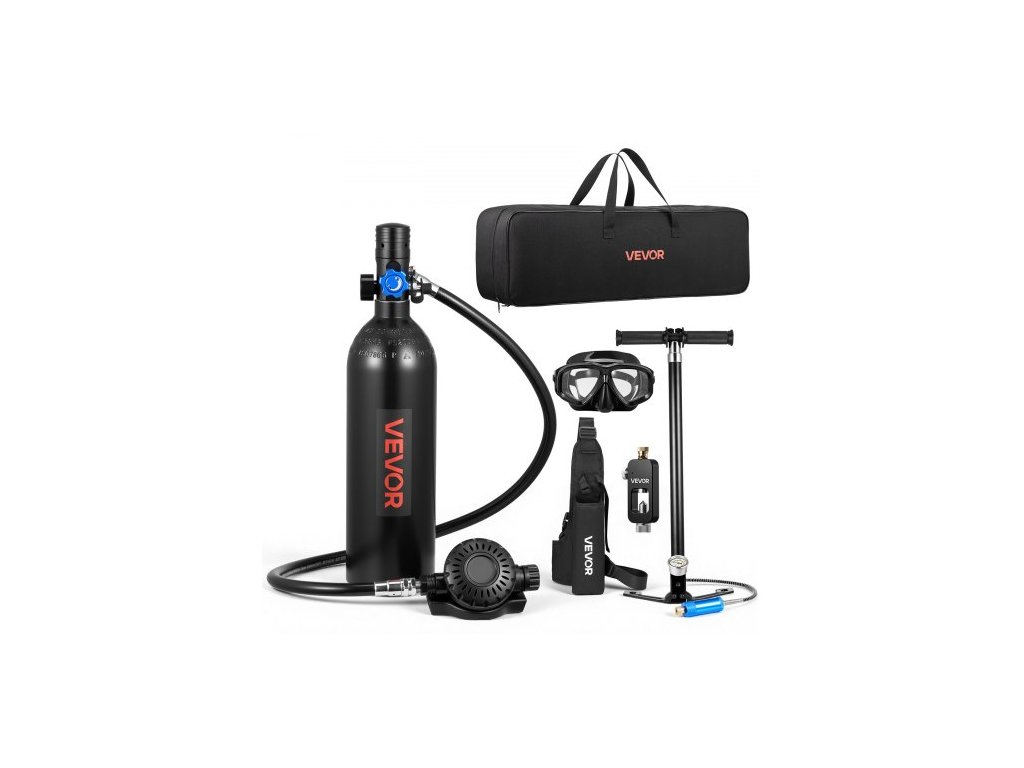 Potápěčská lahev VEVOR Mini, přenosná potápěčská lahev o objemu 1 l pro dýchání pod vodou, opakovaně použitelná plicní potápěčská lahev až na 20 minut ponoru, záchranná lahev Pony s adaptérem a brýlemi pro šnorchlování