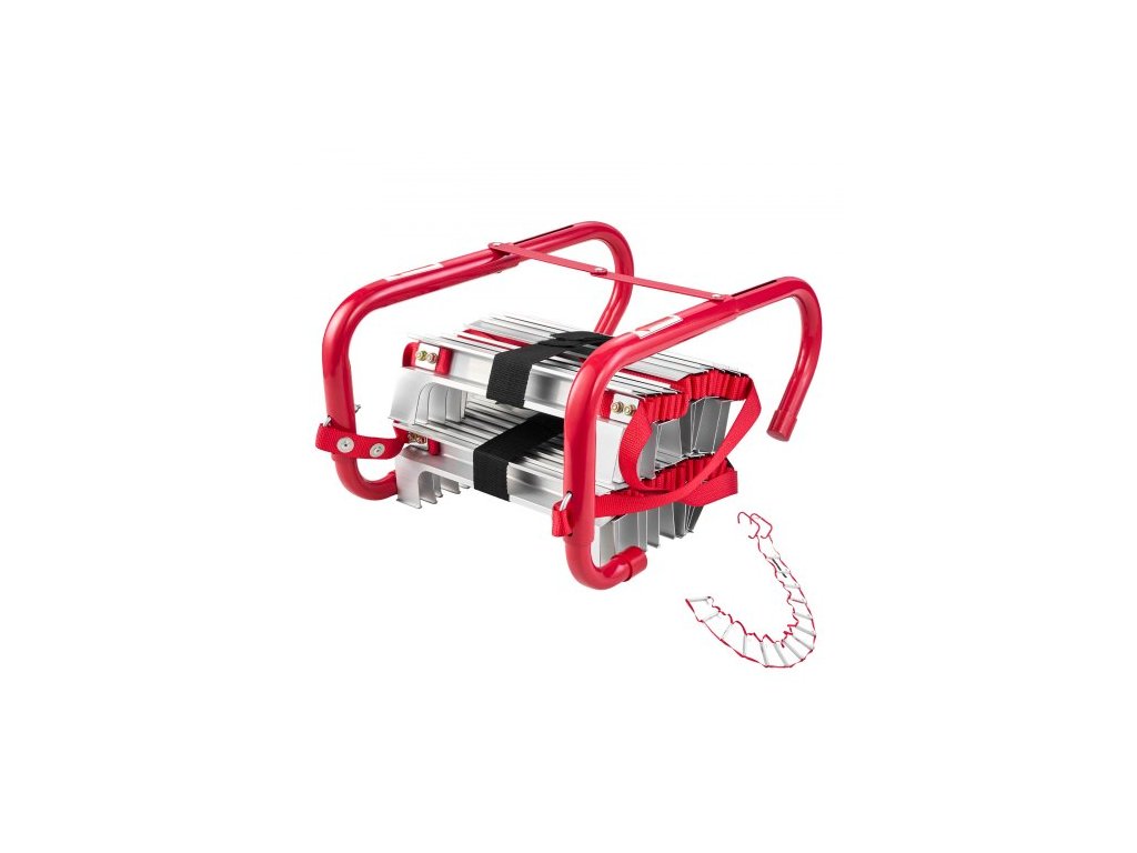 Požární žebřík VEVOR, dvoupatrový, 4m zatahovací nouzový požární žebřík, lehký bezpečnostní únikový žebřík z hliníkové slitiny s pevným polyesterovým popruhem, protiskluzové příčky a široké schůdky, maximální zatížení 453 kg