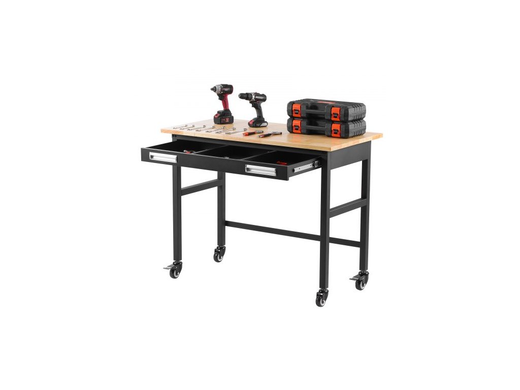 Pracovní stůl VEVOR 48" na kolečkách Pracovní stůl ze dřeva s organizérem zásuvek 1500 lb