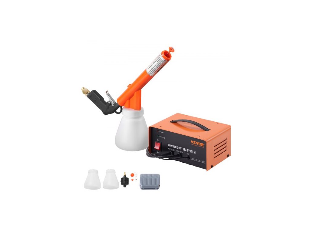 Práškový lakovací systém VEVOR, sada pro práškové lakování s elektrostatickým výstupem 50 kV se stříkací pistolí, nožním spínačem, tryskami a kelímky na prášek, zařízení pro práškové lakování pro domácí kutily a komerční výrobu