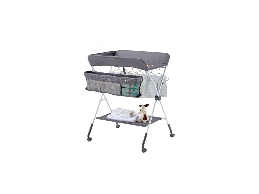 Přebalovací pult VEVOR pro děti, skládací přebalovací stanice s bočním košíkem, přenosný přebalovací pult s nastavitelnou výškou a uzamykatelnými kolečky, multifunkční úložný organizér do dětského pokoje, tmavě šedýPřenosný skládací design