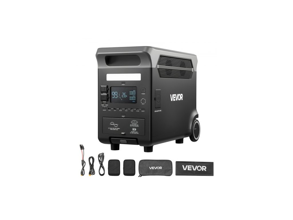 Přenosná elektrárna VEVOR, solární generátor s výkonem 3600 W a 3840 Wh s 10 výstupními porty a nastavitelným vstupním výkonem, rozšiřitelná záložní baterie LiFePO4 pro domácí kempování a obytný vůz (solární panel není součástí balení)