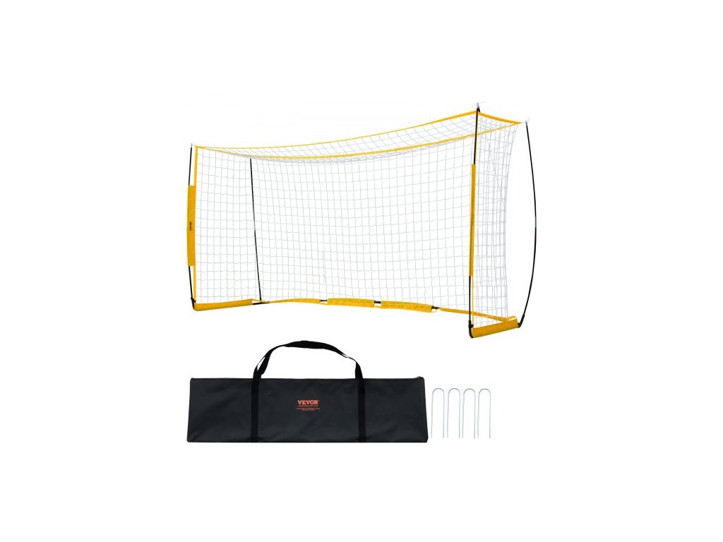 Přenosná fotbalová branka VEVOR, 12x6 stop, fotbalová síť pro dospělé a děti na zahradě, velká tréninková fotbalová síť, sada tréninkových branek z ocelových skelných vláken, venkovní fotbalové branky do každého počasí s přepravní taškou, žlutáVysoce kvalitní síťovina