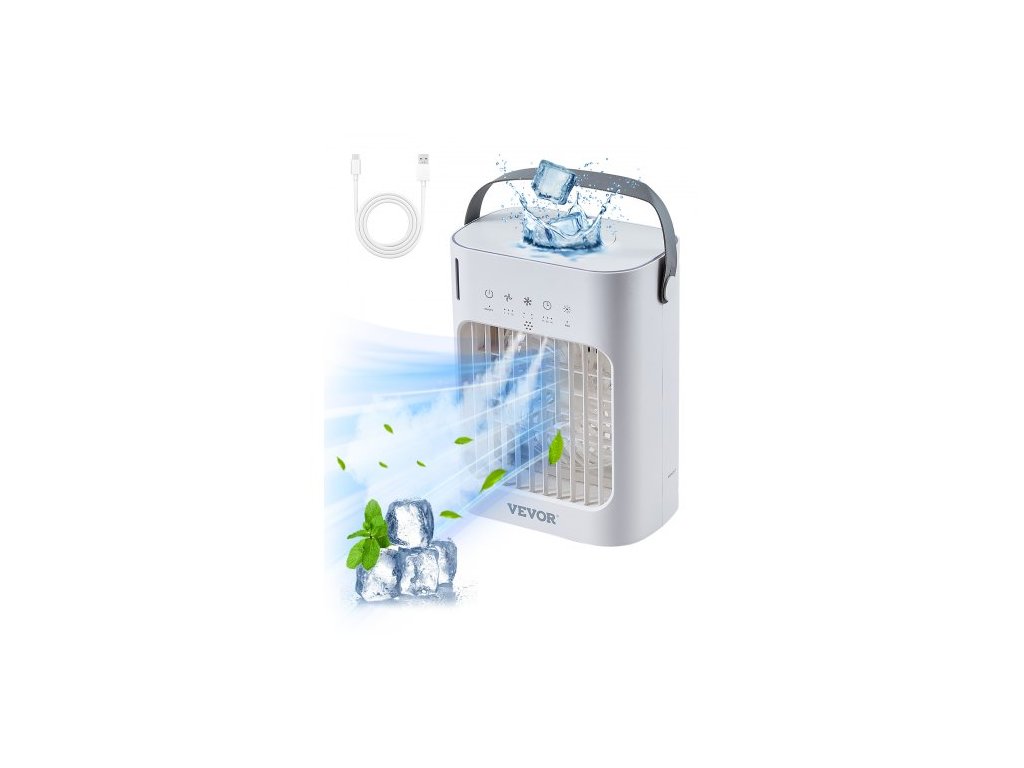 Přenosná klimatizace VEVOR, odpařovací chladič vzduchu 4 v 1, 3stupňová mini klimatizace s inteligentním časovačem 0-7H, 700ml nádrž na vodu, 7barevné světlo, osobní mini stolní ventilátor pro ložnici a kancelářVše v jednom pohodlí