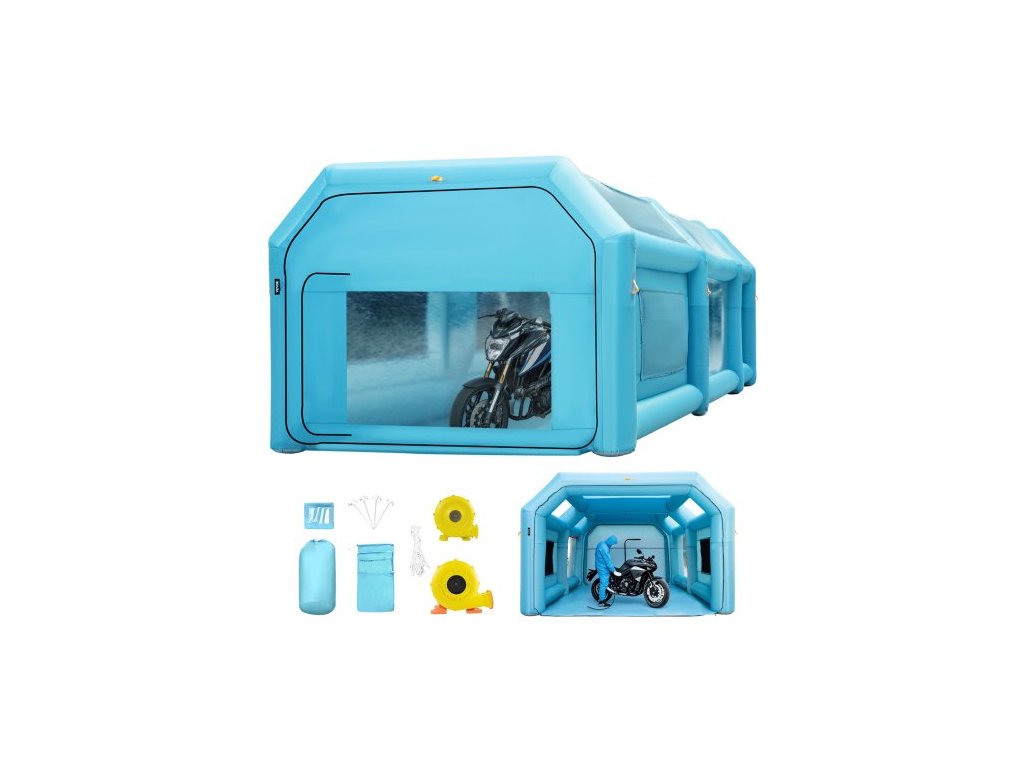 Přenosná nafukovací lakovací kabina VEVOR, nafukovací stříkací kabina 20 x 10 x 8,2 stop, stan pro lakování automobilů se systémem vzduchového filtru a 2 foukači, vylepšený stan s nafukovacím stříkacím boxem, pracovní stanice pro automatické lakování, garáž pro motocyklyVelký Oxford Paint Booo