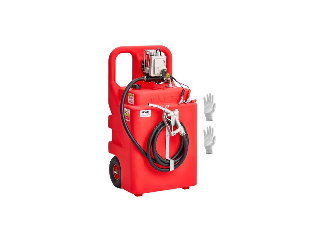 Přenosná palivová nádrž VEVOR o objemu 32 galonů s elektrickým čerpadlem na přečerpávání paliva 12 V DC 15 GPM, 13 stop dlouhou výdejní hadicí a ruční pistolí z hliníkové slitiny, nádrž na benzín pro motorové čluny, čtyřkolky, naftu a benzínObjem 32 galonů
