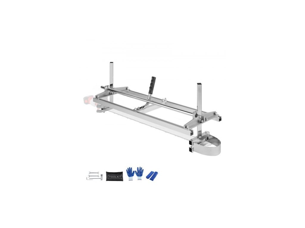 Rozměry produktu: 36 x 12,3 x 18,6 palce / 915 x 312 x 473 mm, Barva: Stříbrná, Povrchová úprava: galvanické pokovování, stříkání, oxidace,Velikost tyče řetězové pily: 14-36 palců / 355-914 mm, Čistá hmotnost: 13,2 lb/6 kg, Maximální tloušťka řezu: 0,2-11,81 palce / 5,08-300 mm