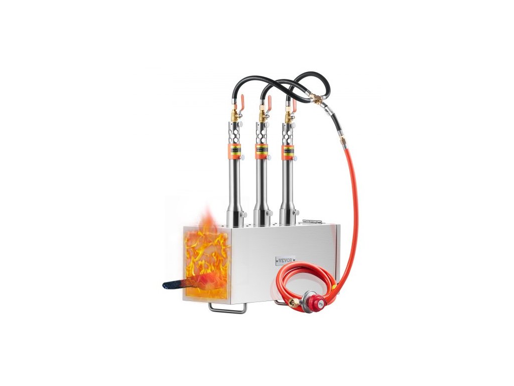 Přenosná propanová kovárna VEVOR, kovárna se 3 hořáky, kovárna s plynovou pecí o teplotě 2600℉, výroba nástrojů a nožů, velkokapacitní čtvercové kovací nástroje a vybavení z nerezové oceli
