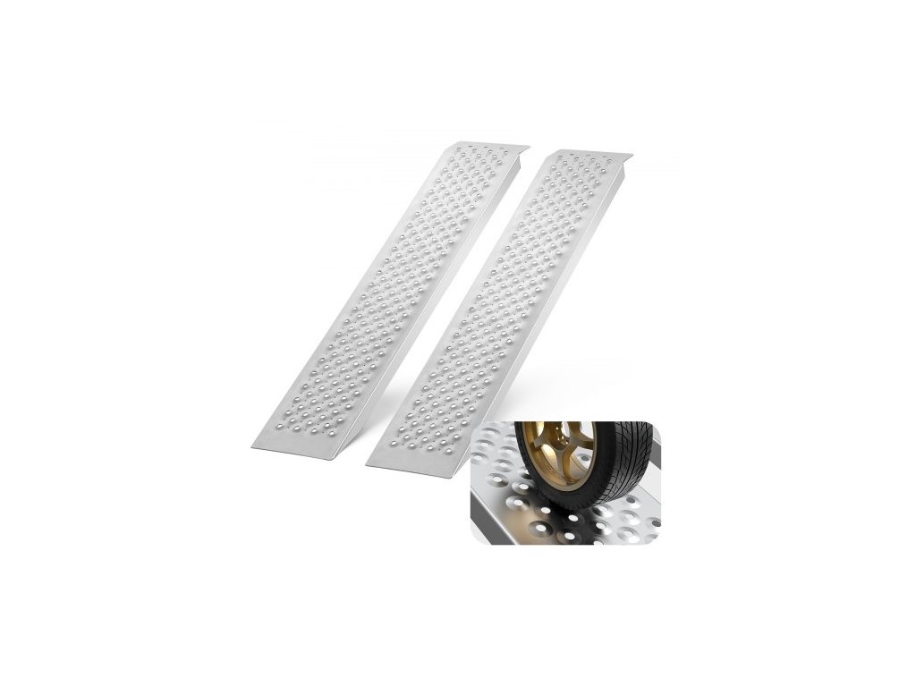 Přenosné nakládací rampy VEVOR, 2 ks 1200 x 215 mm, sada odolných hliníkových nakládacích ramp s protiskluzovými otvory, kompaktní design a snadné skladování, nosnost 399,2 kg, pro čtyřkolky, traktory, sekačky na trávu, vozíky