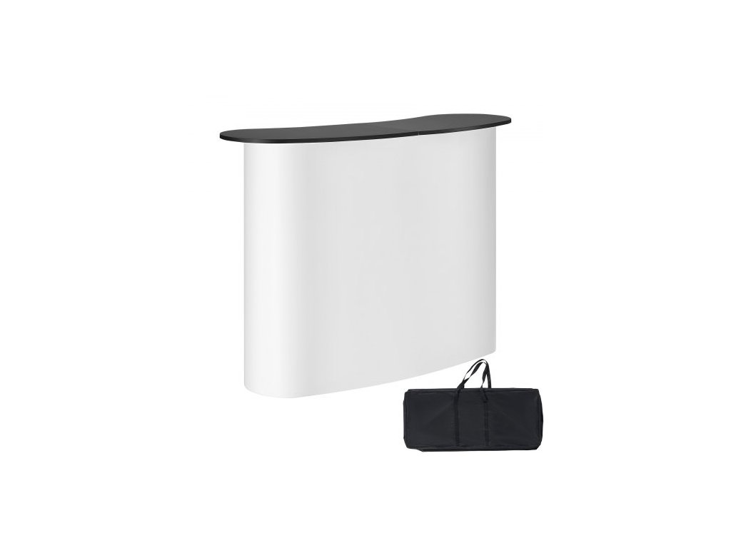 Přenosný veletržní pódiový stůl VEVOR, 130 × 46,5 × 95 cm, výstavní pultový stánek, veletržní stánek se stěnou, skládací propagační maloobchodní barový stůl, vyskakovací pódium s úložným stojanem, přepravní taškaVšestranný a robustní prezentační stůl