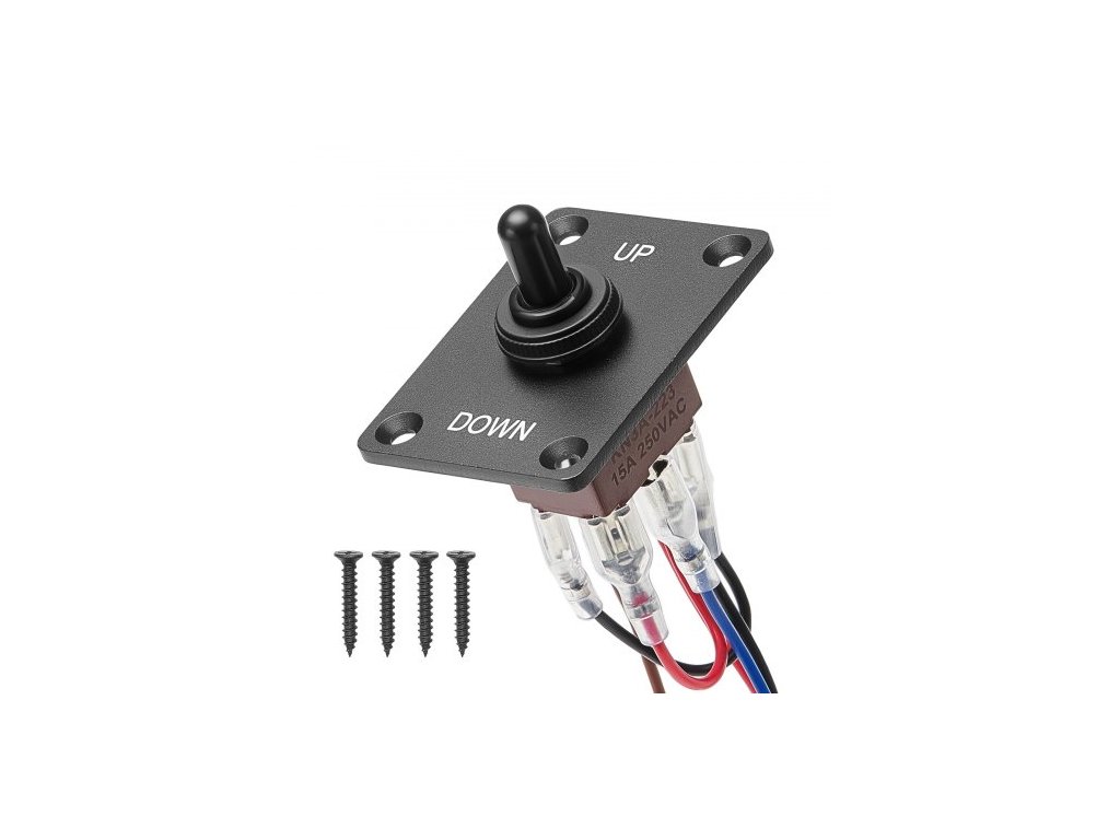 Přepínač VEVOR, 6pinový přepínač s okamžitým přepnutím polarity (ZAP)-VYP-(ZAP) DC 12V/30A AC 250V/15A - s montážním panelem nahoru a vodotěsným krytem boty pro auto, loď a loďSnadné ovládání zvedání a spouštění