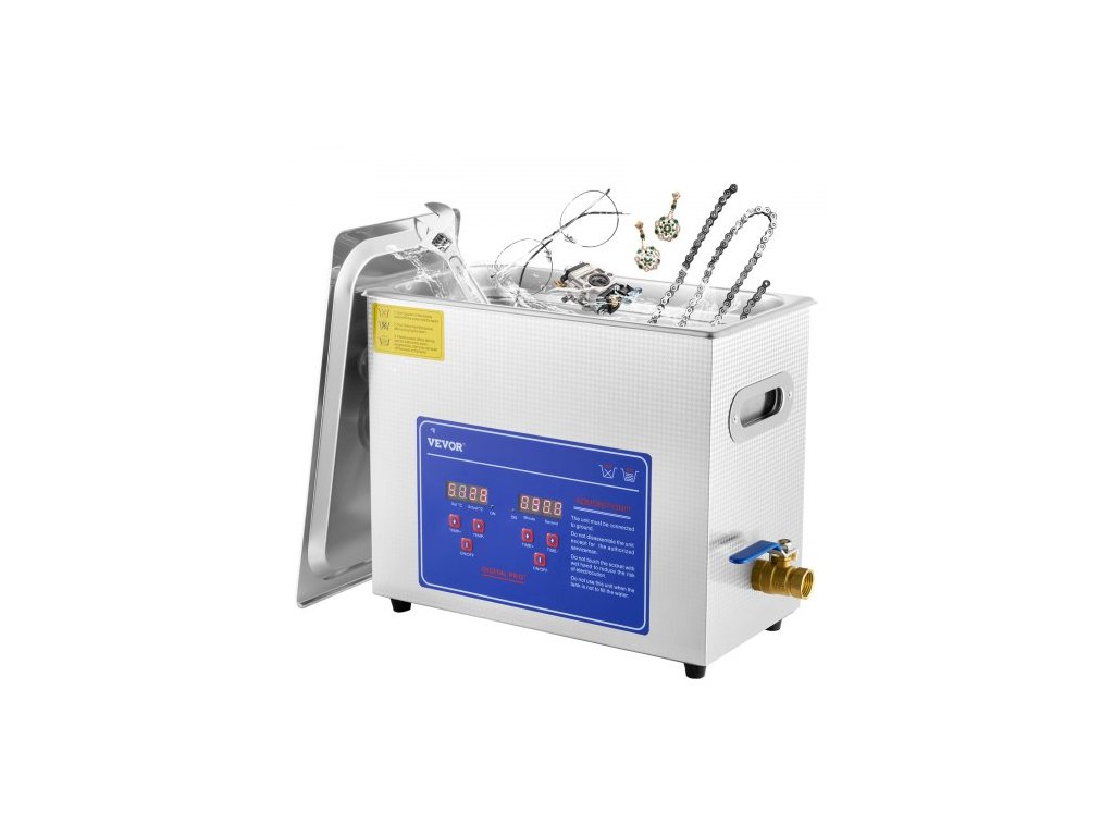 Profesionální ultrazvukový čistič VEVOR, 6l ultrazvukový čistič šperků s digitálním časovačem a ohřívačem, průmyslový sonický čistič z nerezové oceli 40kHz pro brýle, hodinky, prsteny, malé díly