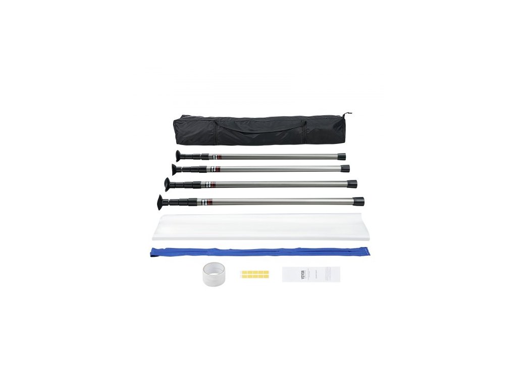 Protiprachové tyče VEVOR, 12 stop dlouhé, systém protiprachové bariéry se 4 teleskopickými tyčemi, magnetickým zipem, přepravní taškou a plastovou fólií 32,8x13,12 stop, pro interiérové dekorace, malování