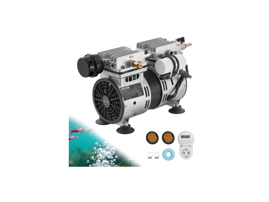 Provzdušňovač jezírek VEVOR, vzduchový kompresor 5,2 CFM 4/5HP, provzdušňovač jezírek do 3 akrů, ochrana proti přehřátí a zpětný ventil, výkonný motor 590 W, provzdušňovací čerpadlo pro cirkulaci kyslíku ve voděVýkonný vzduchový kompresor