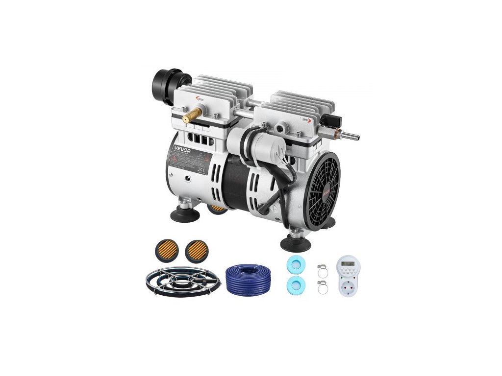 Provzdušňovače jezírek VEVOR, provzdušňovací systém 5,2 CFM pro jezera do 3 akrů, vzduchový kompresor 4/5 HP, 1 difuzor a 30,5 m závaží, venkovní provzdušňovací čerpadlo pro cirkulaci kyslíku v hluboké voděZesílená skořepina z hliníkové slitiny