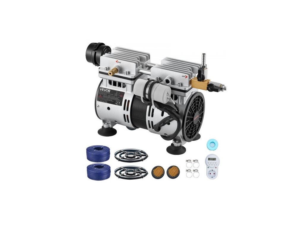 Provzdušňovače jezírek VEVOR, provzdušňovací systém 5,2 CFM pro jezera do 3 akrů, vzduchový kompresor 4/5 HP, 2 difuzéry a dvě závaží o délce 30,5 m, venkovní provzdušňovací čerpadlo pro jezírko s cirkulací kyslíku v hluboké voděZesílená skořepina z hliníkové slitiny