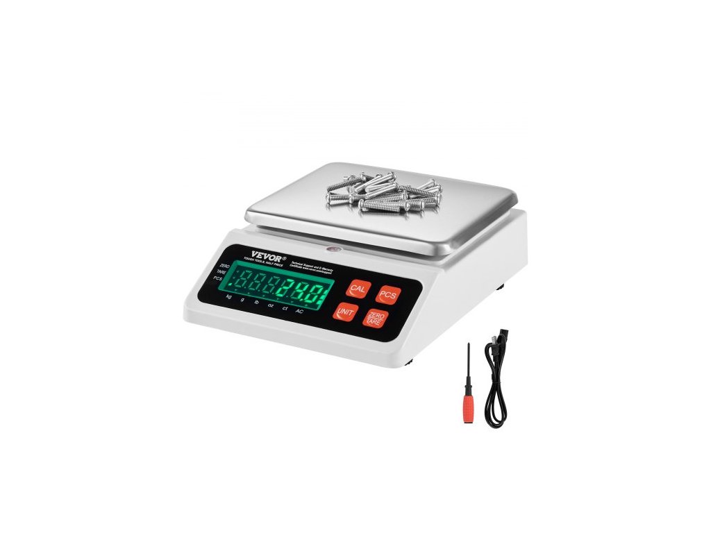 Průmyslová počítací váha VEVOR, 10 kg x 0,1 g, digitální váha na díly a mince, jednotky g/kg/lb/oz/ct, elektronická gramová váha, počítání zásob, kuchyňská počítací váha na šperky s LED obrazovkouInteligentní měření