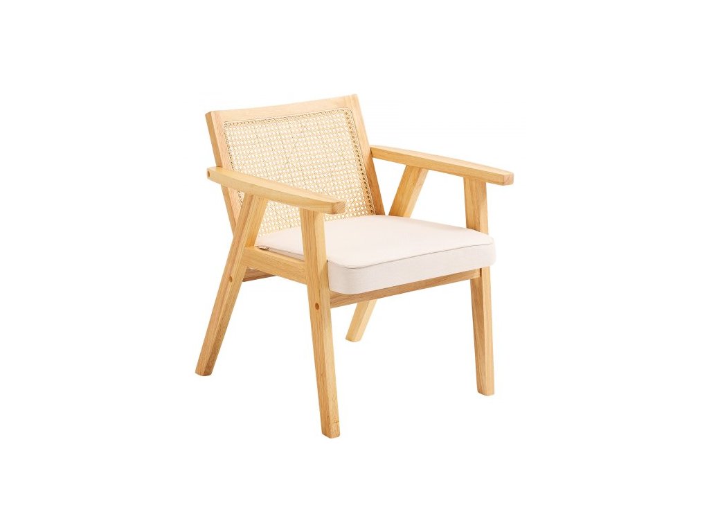 Ratanová židle VEVOR, moderní jídelní židle ve stylu poloviny století s loketní opěrkou, čalouněná židle s ratanovým opěradlem, retro ratanová jídelní kuchyňská židle do obývacího pokoje, ložnice, čítárny a kanceláře, béžováRetro-moderní fúze