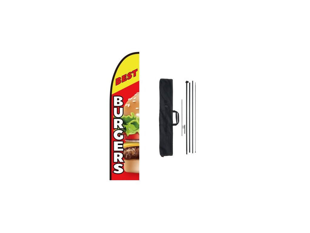 Reklamní vlajka z peří pro restauraci VEVOR Burger s tyčí, reklamní vlajky pro firmy venku, obsahuje 1 bannerovou vlajku, 1 tyč, 1 zemní kolík, vlajku Swooper pro firmy 16,3 FTOdolný materiál