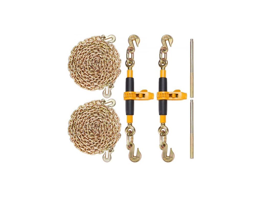 Řetězový pojistný kroužek VEVOR, 2 ks, 3/8"-1/2", pro vysoké zatížení, s řetězy G80, bezpečný limit zatížení 12 000 liber, protiskluzová rukojeť, upevňovací řetězové pojistné kroužky pro plošinový přívěsPáka šetřící práci