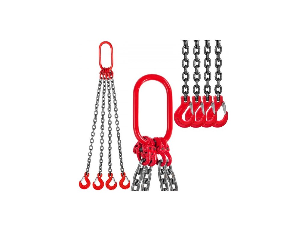 Řetězový popruh VEVOR, zvedací řetězy 5/16 palce x 3,3 stopy s háky, řetězové kladkostroje G80, zvedací řetězy s nosností 11 000 liber/5 tun pro zvedák motoru, řetěz pro zvedání motoru se 4ramennými hákyŘetěz G80