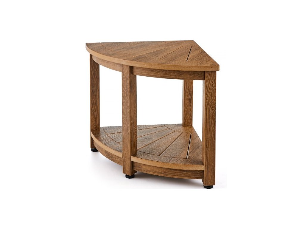 Rohová sprchová lavice VEVOR, výška 46,5 cm, poloměr 43,7 cm, polystyren s imitací dřeva, nosnost 176 kg s úložnou policí, voděodolná, sprchová stolička pro vnitřní i venkovní sprchu, do koupelny a obývacího pokojeDřevěné zrno Plast Dřevěný materiál