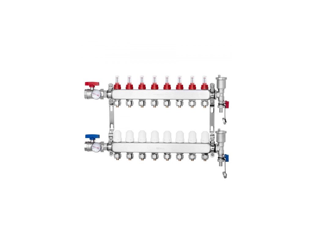 Rozdělovač sálavého vytápění VEVOR s 8 odbočkami, rozdělovač s trubkami PEX 1/2", rozdělovač PEX z nerezové oceli pro hydronické podlahové vytápění, sada rozdělovače PEX pro sálavé vytápění s adaptéry 1/2" součástí balení