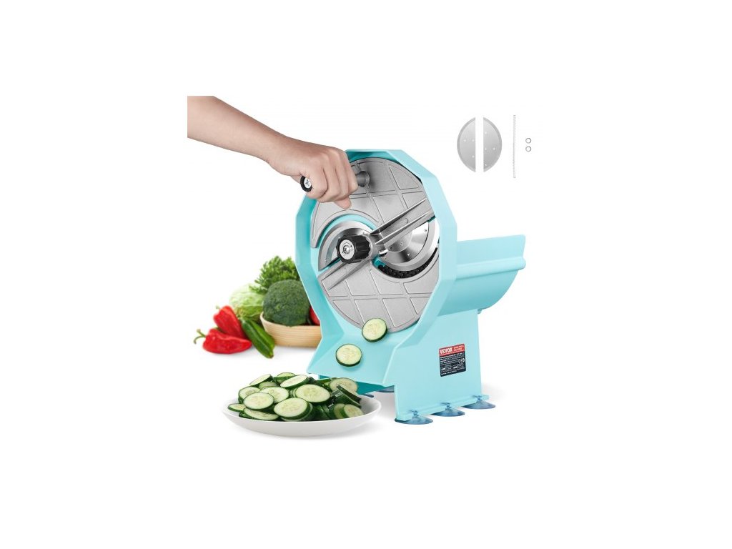 Ruční kráječ zeleniny a ovoce VEVOR, nastavitelný kráječ na tloušťku 0-0,5"/0-12 mm, dvojitý podávací otvor, nerezová čepel, kráječ potravin na okurky, citrony a rajčataDosáhněte rovnoměrné tloušťky řezů