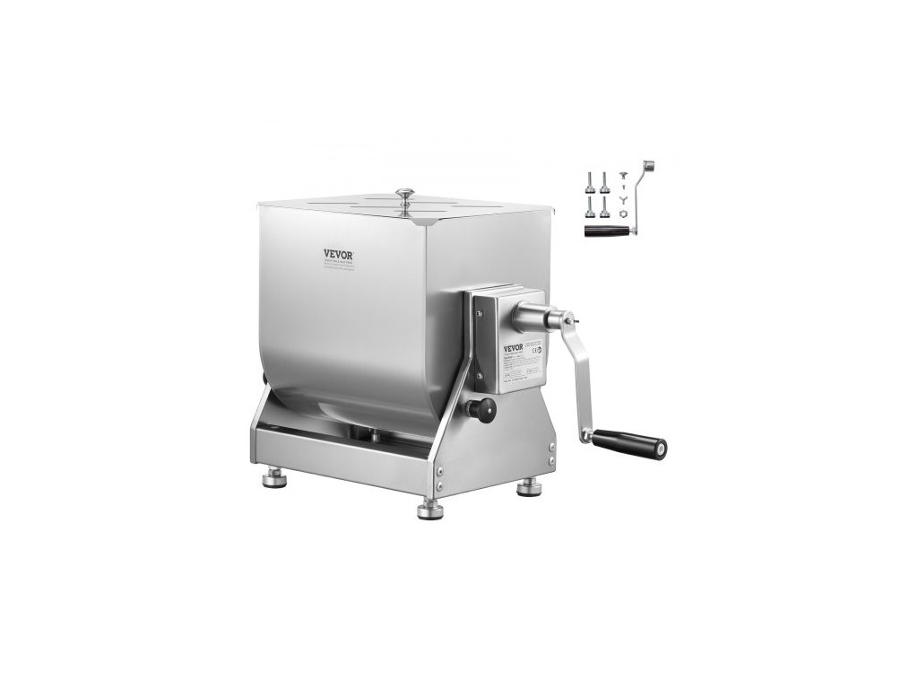 Ruční mixér na maso VEVOR, 30l naklápěcí nádrž na maso (míchání max. 13,6 kg masa), nerezový mixér na maso, mixér na klobásy s víkem, rukojetí a reduktorem, ruční mixér na mleté hovězí masoKomerční mixér masa