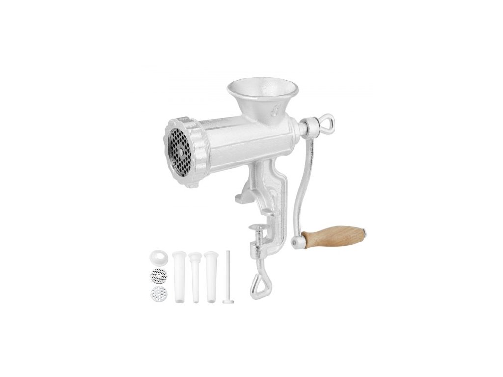 Ruční mlýnek na maso VEVOR, vysoce výkonný litinový ruční mlýnek na maso s ocelovou stolní svorkou, mlýnek na maso a klobásy s 1 řezným nožem, 2 řeznými deskami, 3 klobásovými trubičkami na hovězí, papriku, houbyZažijte kulinářské lahůdky
